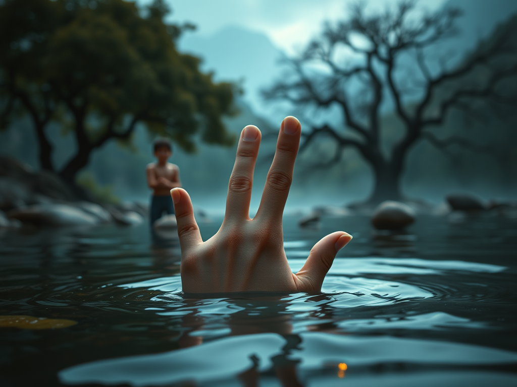 Tan misteriosamente como había aparecido, y furiosa por no haber podido tentar al joven, la espantosa mano se adentró nuevamente en el río, esperando a su próxima víctima.