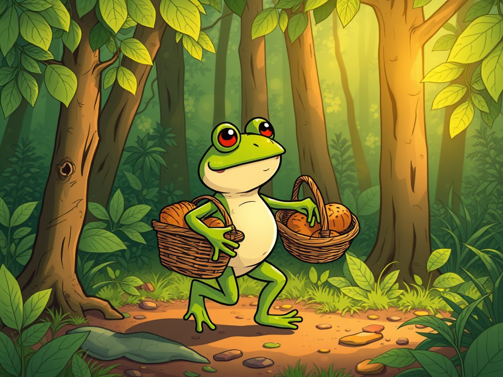 En una soleada mañana, la rana Ana salió a pasear por el campo, iría también a la panadería de su amiga, la tendera Carla, para saludarla. De vuelta a casa, llevaba una pequeña canasta llena de pan recién horneado y tiernas magdalenas que había comprado para desayunar. Mientras saltaba alegremente, encontró una planta de hermosas flores naranjas y se detuvo a admirarla.