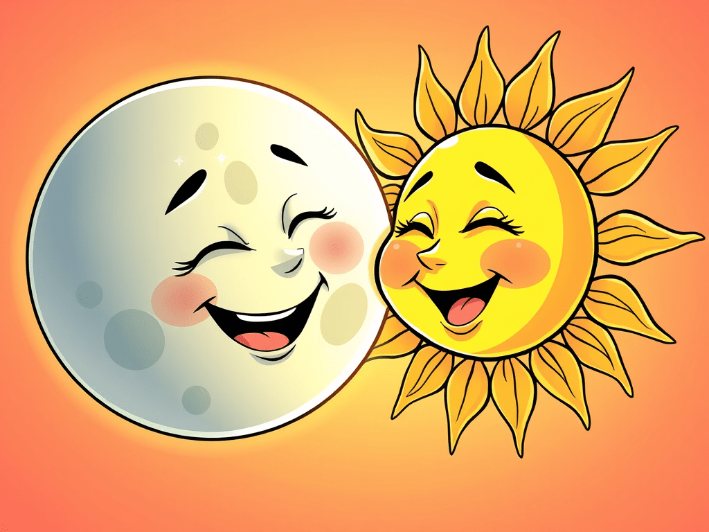 Luna se enamoró de Sol esa noche. Lo vio de espaldas, volando ¿llegaba tarde? le habían hablado de él, de la luz que emanaba, del calorcito que proporcionaba en invierno y de lo pesado que podía ser en verano, pero nunca coincidían. Quedó prendada por sus cabellos dorados, ondulando en perfecta desarmonía bajo la brisa de esa noche. ¡Ya no lo olvidaría!. Le tomó el relevo, y soñó despierta: toda la noche lo imaginó, a su lado, como si fuera un fantasma de rubios cabellos que la miraba de manera tan dulce y romántica como ella lo miraba a él. Luna no dejaba de hablar de Sol a las estrellas, incluso a las fugaces, aunque solamente le hicieran caso una milésima de segundo, a las estrellas conocidas de cada noche, de cada año, a las constelaciones, a los planetas… todos la escuchaban, pero nadie podía ayudarla, pues su único consuelo, según lloriqueaba, era estar, aunque fuera un ratito, con Sol. Un día, las estrellas salieron temprano, aprovechando que era una noche despejada y hablaron con Sol, le dijeron que no se fuera esa noche tan pronto y esperase a Luna, para que ella pudiera mitigar su dolor. Sol, se sorprendió de semejante ruego, pero como buen rey, quiso hacer feliz a su compañera de cielo, y esa noche, se esperó un ratito para ver a Luna. Esta, cuando lo vio, se emocionó tanto, que corrió a abrazarlo, pero no se pudo acercar demasiado, pues sentía que caería derretida, literal y no solo metafóricamente, a los pies de Sol. Estuvieron hablando unos minutos, y el amor de Luna, esa noche, creció tanto como ella, que estaba en su etapa de cuarto creciente. Sol también quedó admirado por la belleza resplandeciente de Luna y por su conversación amena, explicandole cosas de la noche que él nunca vio. A la siguiente noche, Sol no necesitó que las estrellas le insistieran en que se quedase a hablar con Luna porque el astro rey, esperaba con vehemencia a que ésta apareciera. El rato que ambos coincidieron, fue si cabe más hermoso que el de la noche anterior: Luna ya se encontraba en su fase llena, y así se sentía, plena de amor por Sol, quien por su parte, empezaba a sentir un cosquilleo en todos sus rayos cuando estaba con Luna. Así, ambos enamorados estuvieron unas cuantas noches, disfrutando de sus escasos minutos juntos; sin embargo, una noche, de repente, Luna parecía no estar tan entusiasmada al ver a Sol y éste notó como si su amada se apagase un poquito. El amigo arco iris que se había dejado ver tras la tormenta y que era muy entendido en temas mágicos y románticos, achacó este estado de Luna a que ésta estaba en su cuarto menguante, pero nadie le hizo caso… La luz brillante de Luna se iba apagando, a pesar de estar junto a su amor, no sabía qué tenía, estaba como desganada, aburrida, incluso, me atrevería a decir, que… desenamorada. Una noche, tardó en llegar a su cita con Sol, hasta que este, sin poder esperarla más, tuvo que agachar tristemente sus rayos y retirarse a esperar que la noche del día siguiente no tardase, para volver a ver a Luna, aunque, la caprichosa musa, se pasó así unos cuantos días, retrasando su cita con Sol, quien cada vez estaba más apagado. Pero una noche, Luna vino temprano a su cita con Sol, se la veía radiante, resplandeciente, como si fuera una luna nueva y cuando Sol la vio, corrió a su encuentro, olvidó que había prometido no hacerle caso, que juró no volver a caer rendido ante sus encantos y que nunca más volvería a enamorarse…